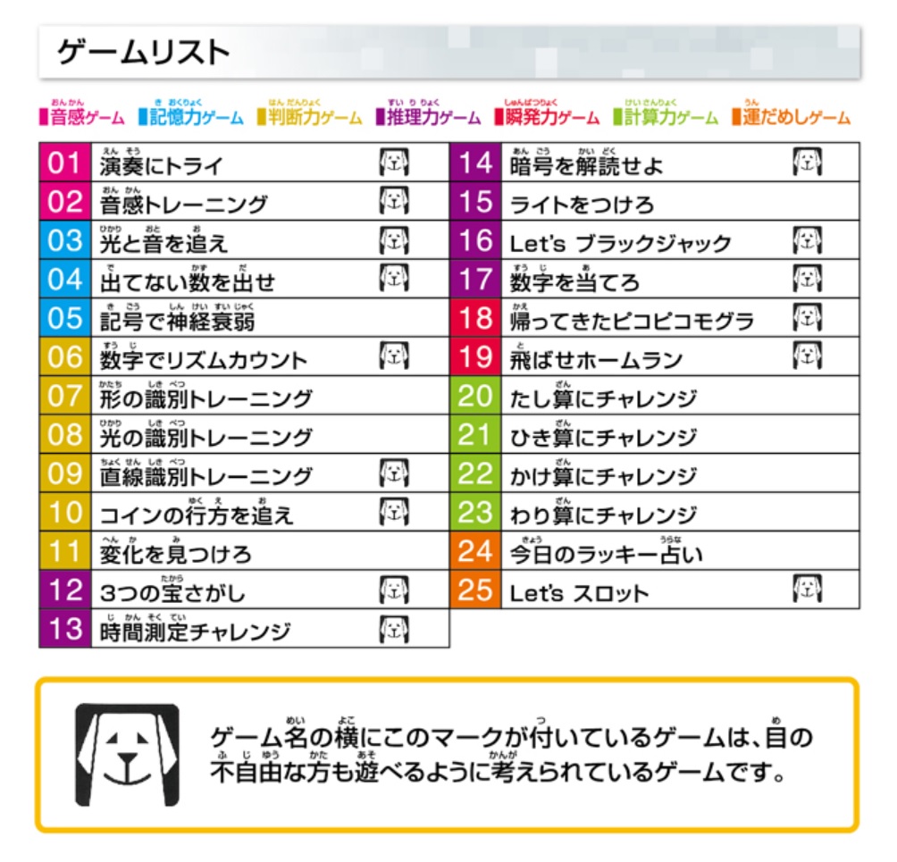 ゲームロボット25 ゲームロボット25 (4977513057707) コンパクトなスマホサイズサイズで遊び心地抜群!さまざまな能力を駆使して多彩なゲームにチャレンジ出来ます。イヤホンをつければ、いつでもどこでも気兼ねなく遊べます。 視覚障害の方でも遊べるゲームが15種類もあり、共遊玩具に認定されています。 ※単4電池×3本使用(別売) 日本おもちゃ大賞2014 共遊玩具部門 優秀賞 受賞 在庫状態 : 売り切れ ¥3,278(税込) 只今お取扱い出来ません